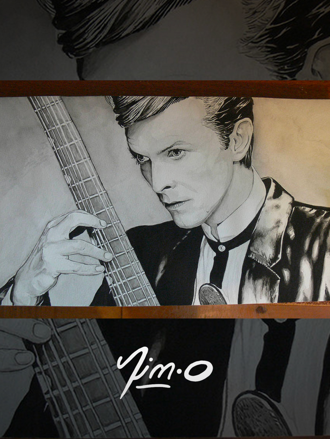 David Bowie portrait, black & white.